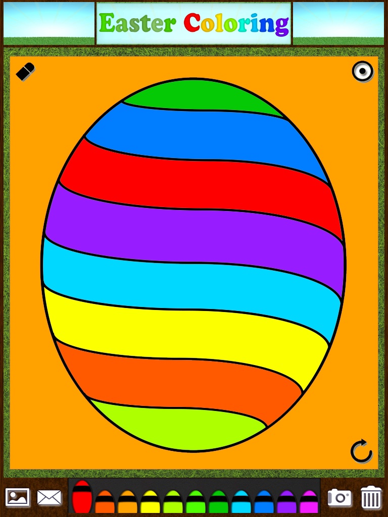 Wonderful coloring book application, just in time for Easter! Use egg shaped crayons to color over Easter themed pictures. Fun for all ages!