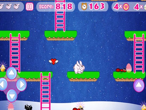 * Avoiding the aggressive, dangerous ant and bat plus overcome high platforms to collect the full 5 Easter eggs and 5 cups of cake.