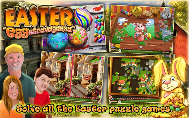 Everywhere in this amazing Easter Wonderland is crammed full of Easter Eggs, Bunnies, Candy and Fabulous Toys. Mom takes Mike and Sally to get fresh laid eggs from the Farm, then they they come home to paint them. Meanwhile, the Easter Bunny runs past and leaves eggs all over the backyard for them to find. Next, the family go downtown to the Shopping Mall, then visit Auntie Janet’s house, before going to the nearby Church for the ultimate Mega Easter Egg Hunt. Play captivating mini games such as spot-the-difference, jigsaw puzzles and many more in an Easter Eggztravaganza for all the family to enjoy..