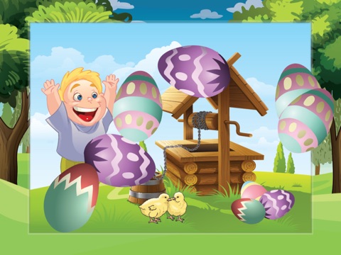 Easter puzzle game. Fun and easy learning for kids and toddlers, boys and girls - ages: 1, 2, 3, 4 years old.