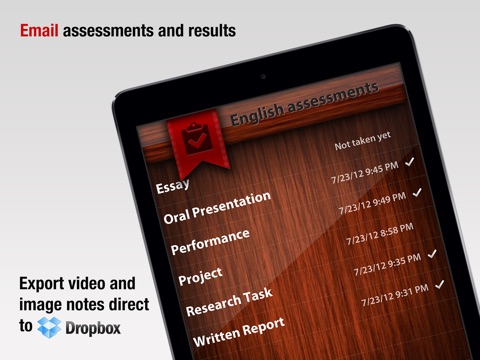 Love this app. It is very useful in the classroom and has saved me a lot of time on rubrics-based grading. Would like it better if everything worked. Cannot access camera to add photo or video. Also, when you export you only get the points without any notes that you have added. Also would like the ability to use the app in landscape.