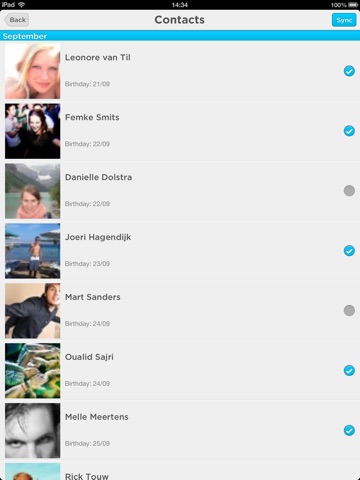 Synchronize once, and the app sends you a notification for all - or a selection - of your Facebook-friends birthdays. You pick the moment!