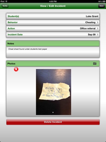•Attach a photo to an incident for documentation. The next time a student sleeps in class or defaces school property, snap a photo for your records.