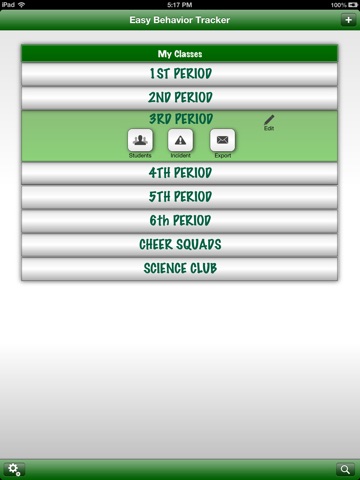 • Manage behavior types and actions taken by easily adding the incidents that occur most often in your particular classroom. Good behaviors can be added if you want to use the app to monitor positive behaviors like good attitudes or excellent participation.