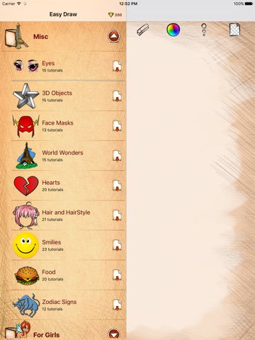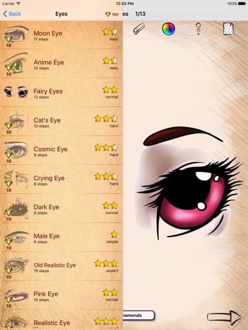 The process of learning to draw Eyes is really fast and interesting. Gamers select the topic, follow the instructions, then create their masterpieces. They can play alone or share pictures with another gamers. The lessons are divided into levels, so art application doesnt have age limits. Options are clear, colors have extraordinary shades, drawing tools are different.