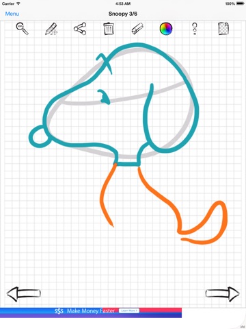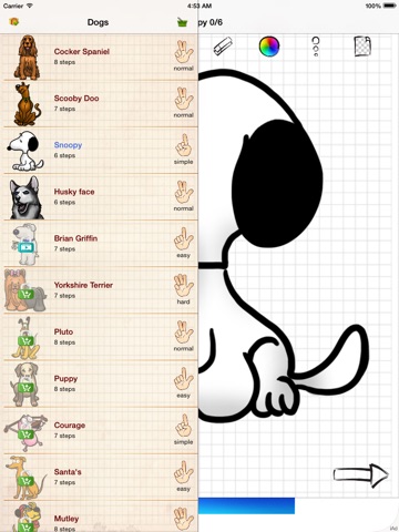 Learning to draw with our apps consists of following of each step presented in the tutorial for the subject you want to learn to draw. The number of steps varies, but each one covers a key aspect of the subject. Even complex subjects such as catdog are a snap!