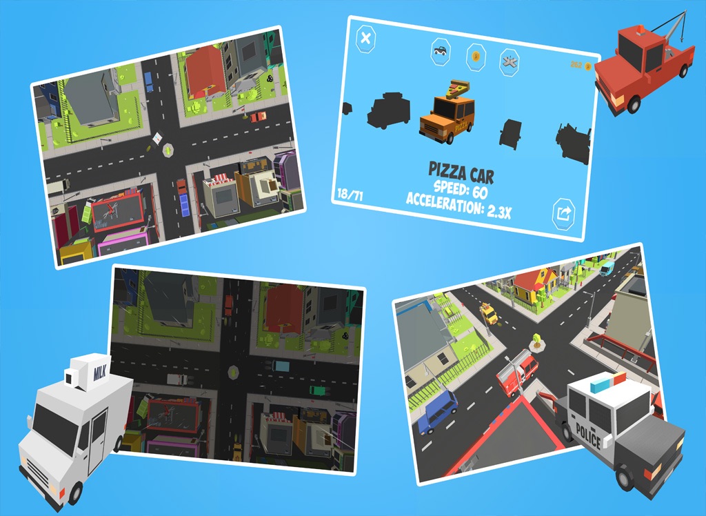 The game has several levels, which you can access by setting the level of the previous good record. Also you can open more and more new cars, which will be appearing at the intersection.