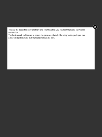 Read the description of every type of animal call before playing it to get a better understanding of how to interact with ducks. You can also find a very useful duck hunting guide within the app to get a deeper understanding of the whole situation.
