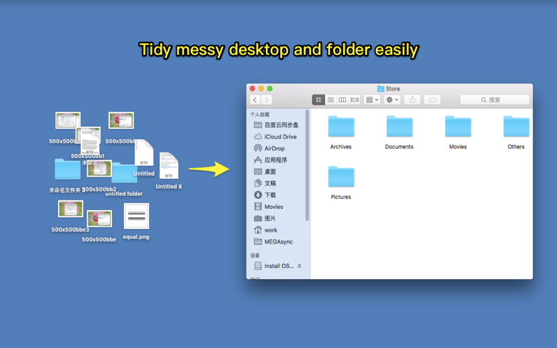 Want to tidy messy files and folders easily? Want to tidy messy desktop quickly? this App is what you need!