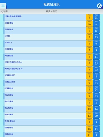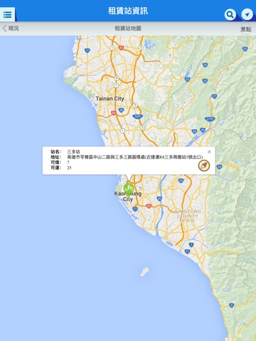 民眾可即時得知所有租賃站地圖定位、所剩車輛與車位,目前位置到所選租賃站路徑規劃,亦可設定最愛站點。