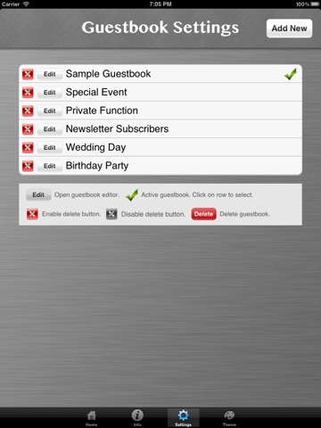 Guestbooks can be customized depending on what data you intend to collect. Multiple guestbooks can be designed for a variety of events and saved for future use.
