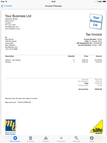 * Add UNLIMITED products/services to your Products List so you can complete your invoice on the go quicker and easier than ever before. No more repetitive typing of the same things on every invoice!