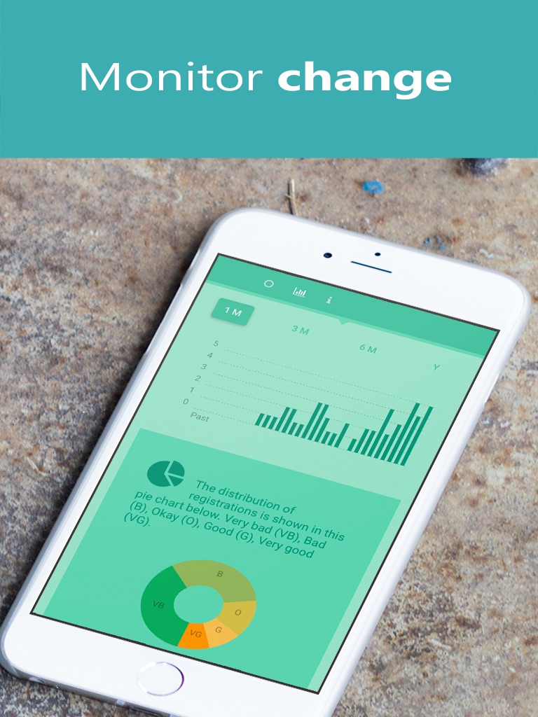 A mood journal help you register and visualize your mood with the purpose of taking action to improve it. Mood diary is a tool often recommended by psychologists and therapists to help discover facts about ourselves that otherwise slip our attention. You may experience a diagnosed condition like anxiety, bipolar, OCD or depression. You may have stressful job or you may otherwise be emotional unbalanced.