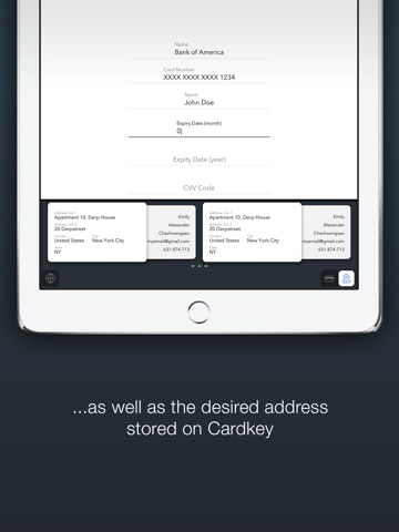 Simply scan or key in your credit card or debit card information into Easy Pay iPhone app, and you can pull out the payment information anytime, with just one tap. With Easy Pay Keyboard, you never have to retype the payment information each and every time.