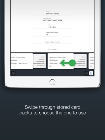 - Swipe through stored card packs and addresses to choose the ones to use.