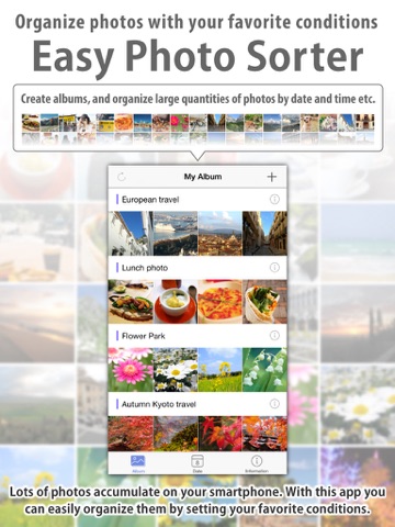 Lets take advantage of accumulated photos, and organize all the photos built up on your smartphone with Easy Photo Sorter!
