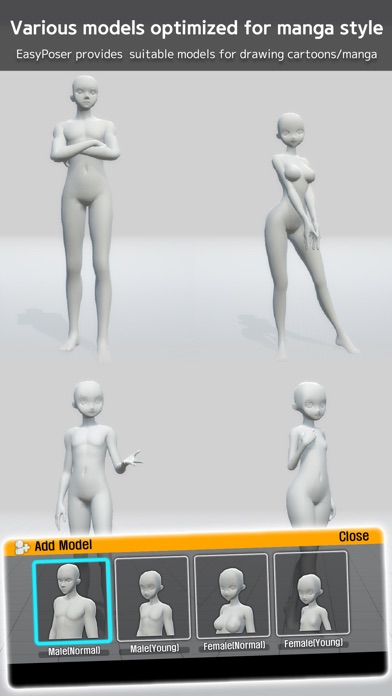 2. Comic Style Models – Previous pose apps had many realistic eight-head ratio men and women, making it unsuitable for animation, webtoon or game illustrations. Easy Pose is prepared with models with various body types.