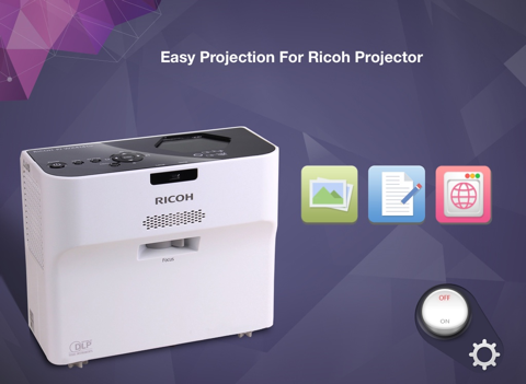 Easy Projection For Ricoh Projector是一个可以方便地把iOS设备中的照片,文档,网页等内容利用Wifi直接通过理光的投影仪进行投影的应用程序。