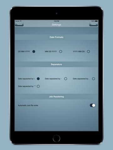 • Option for the automatic or the manual arrangement of the jobs in the work experience