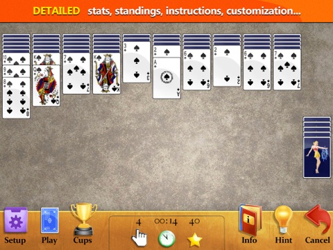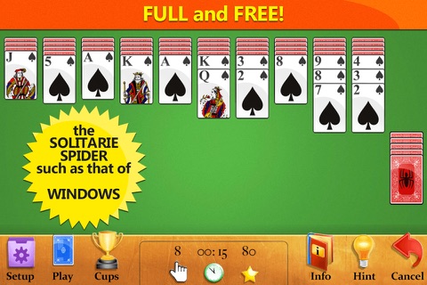 EASY SPIDER Solitaire is the famous solitaire card SPIDER, designed to be simple to use, relaxing, attention to detail... and it is FREE and COMPLETE 100%