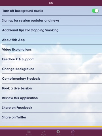 This is a very useful, extremely motivational app. Mr. Marks offers a wide variety of information about why people smoke and why hynotherapy is a positive way to stop smoking. Mr. Marks talks about the smoker as having an inner-conflict with himself/herself. Some people want to stop, but cannot because of what they fear they may "lose." There is a also section that discusses focusing on the positive, not the negative. Make a choice to think about things that make you feel good.