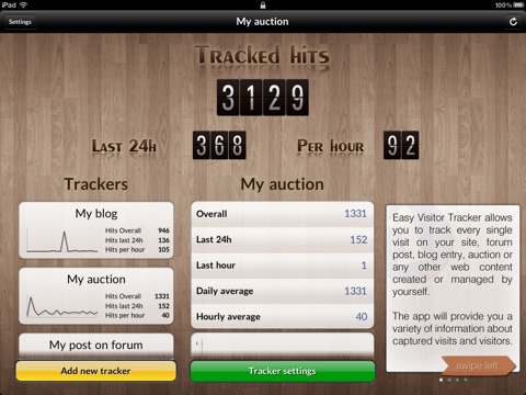 - in opposition to all popular analytics services, statistics are provided in the real-time. You can see first visit’s footprints within the app just after a few seconds after starting tracking (of course if there were any ;)