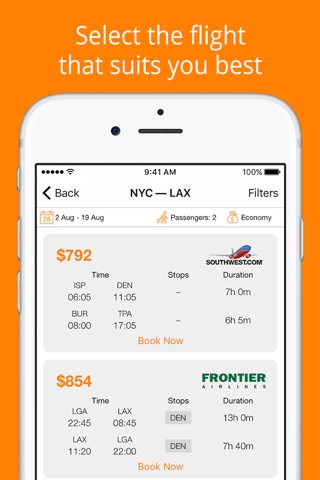 Clear and simple interface will not distract you from the only thing that matters - your flight and trip.