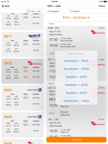 EasyFlights will compare flight prices for you and will find the best ones among thousands offers from hundreds airlines and travel agencies! Huge selections of filters for multiple parameters will let you find the flight that suits you best.