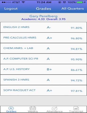 -View different quarters as well as all quarters combined and corresponding GPAs