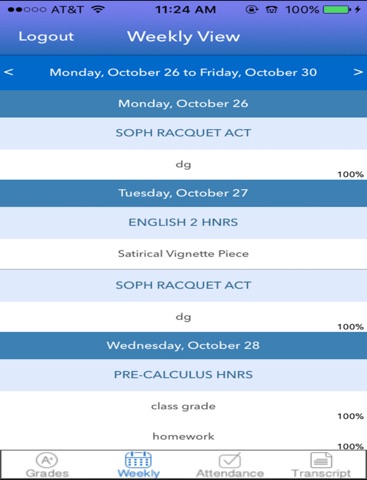 -Navigate to different weeks to see assignments that are due or assignments that have been graded in the past
