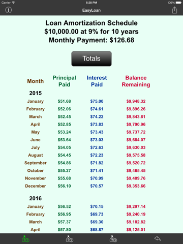 The original iPhone loan calculator is back! EasyLoan is an app that will let you quickly calculate loan payments for up to 3 different loan scenarios. Simply enter the loan amount, interest rate and term. Then press the "Calculate" button and the loan payment is computed. There is also an option to display and email an full amortization table.