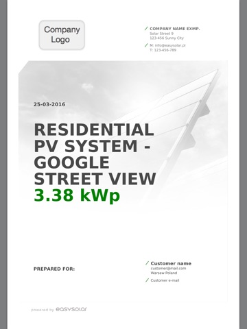 EasySolar is the first PV design app that is a fully functional extension of EasySolar online platform. EasySolar helps you to work and manage your sales wherever you are. Online platform together with EasySolar app allows user to: