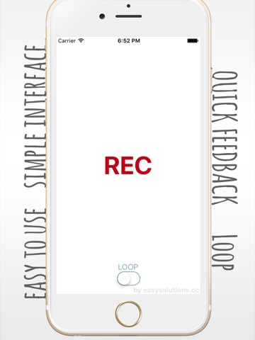 Tap or hold* the screen, do your thing (sing, speak, make sounds ...) and release the finger when youre done. Hear immediately what you sound like. The perfect tool to learn tricky phrases and parts that are hard to sing. Without REC, STOP, PLAYBACK ... AND AGAIN ... AND AGAIN