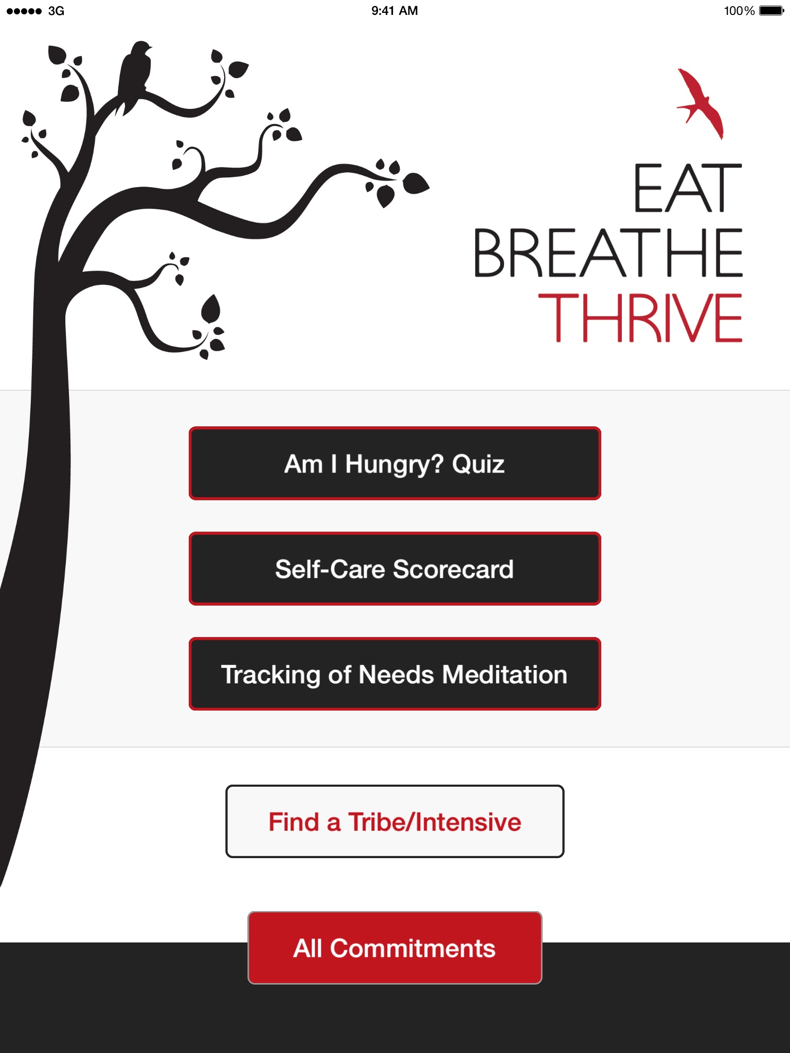 Based on Eat Breathe Thrives integrative, mind-body programs, this app includes: