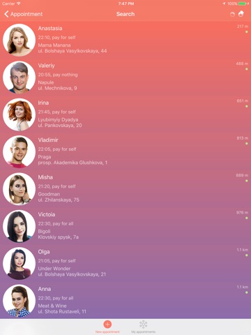 Choose a company to your taste! Among the thousands of participants Eat I Meet - charming strangers, desperate intellectuals, businessmen. Feel free to invite them to a cup of coffee, lunch, dinner, or maybe a pep party!