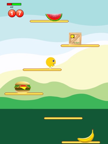Your objective is to stay healthy and alive by jumping from one platform to another. Eat your fruits and veggies and you will notice your points quickly adding up. Eat unhealthy stuff like cheeseburgers and cakes and points will be deducted instantly. Unhealthy food will make you sick and change color from green to orange or red - and after red, the game is over. Get healthier by eating good food and push large crates to squash the bad food and gain extra points. You can tap to jump to another platform or over the crate. Eat Smart is a fast paced game, the gameplay is attractive, mindfully nutritious.