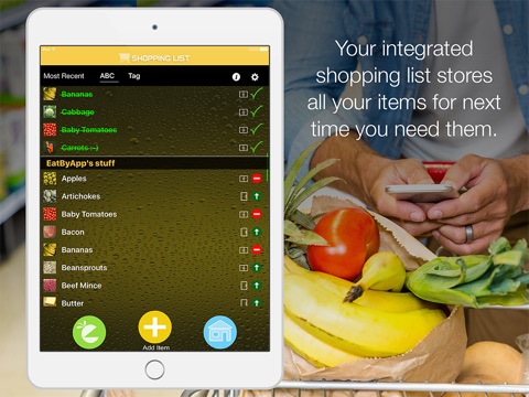 EatBy App essentially cycles your food items between the shopping list and your inventory.