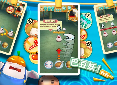 Therere greedy monsters which keep eating day and night, and their favorite stuff is food. On order to satisfy their needs, we have to keep feeding them by foods. They will grow up by eating foods; besides, more cute monsters will be attracted by these foods.