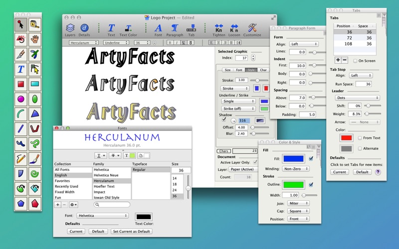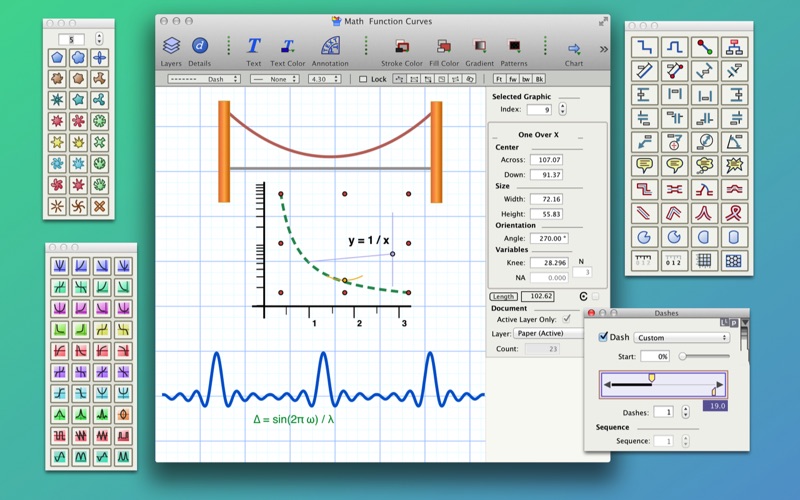 EazyDraw is perfect for technical drawings, text/page layout, computer art, architectural plans, letters and forms, logo design, flow charts, genealogy charts, maps, scientific illustrations, app icons, web graphics, and more.