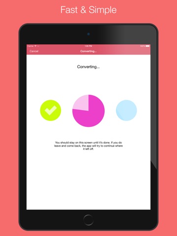 Conversion is done on a secure cloud server, which makes conversion easier, faster and much more battery-friendly. You must have an internet connection to use this app. Files are immediately deleted from the server after conversion. While the files are immediately deleted after conversion or cancellation, you should be aware that by using this app, you agree that your files will be sent over to internet from the app to the conversion server.