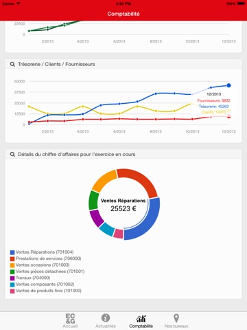 Retrouvez sur notre application laccès à votre comptabilité, toute lactualité juridique, fiscale et sociale et la géolocalisation de nos bureaux que vous pourrez joindre par téléphone ou mail depuis votre iPhone/iPad.