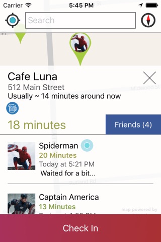 You can connect with Facebook, so that your friends can see where you are hanging out tonight. Then check out what your friends are up to, and join them if youre nearby.