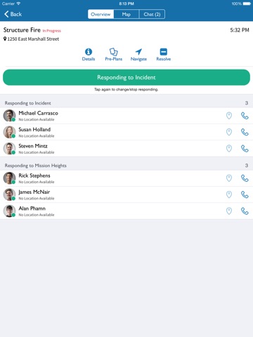 Real-time GPS updates for your responders. All of your department members can individually opt-in to share their current location when responding to a call in progress.