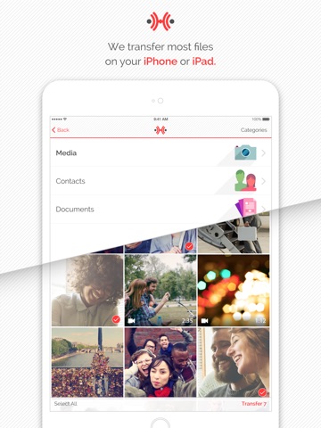 • Transfer photos, videos, contacts and documents between iOS (iPhone, iPad), non-iOS and computer