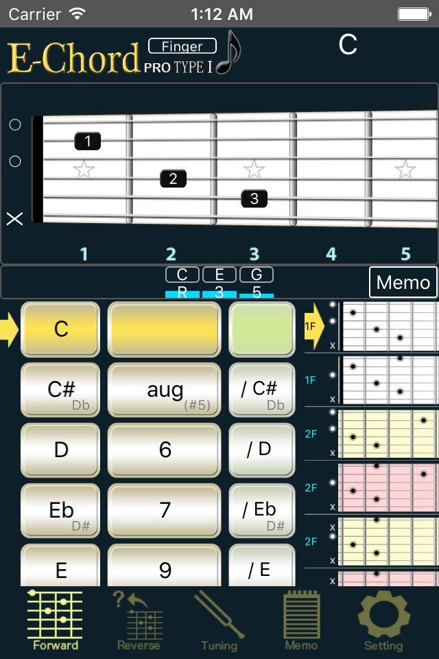 In the same way, chord names can be determined from finger position (reverse lookup). Please try it out!