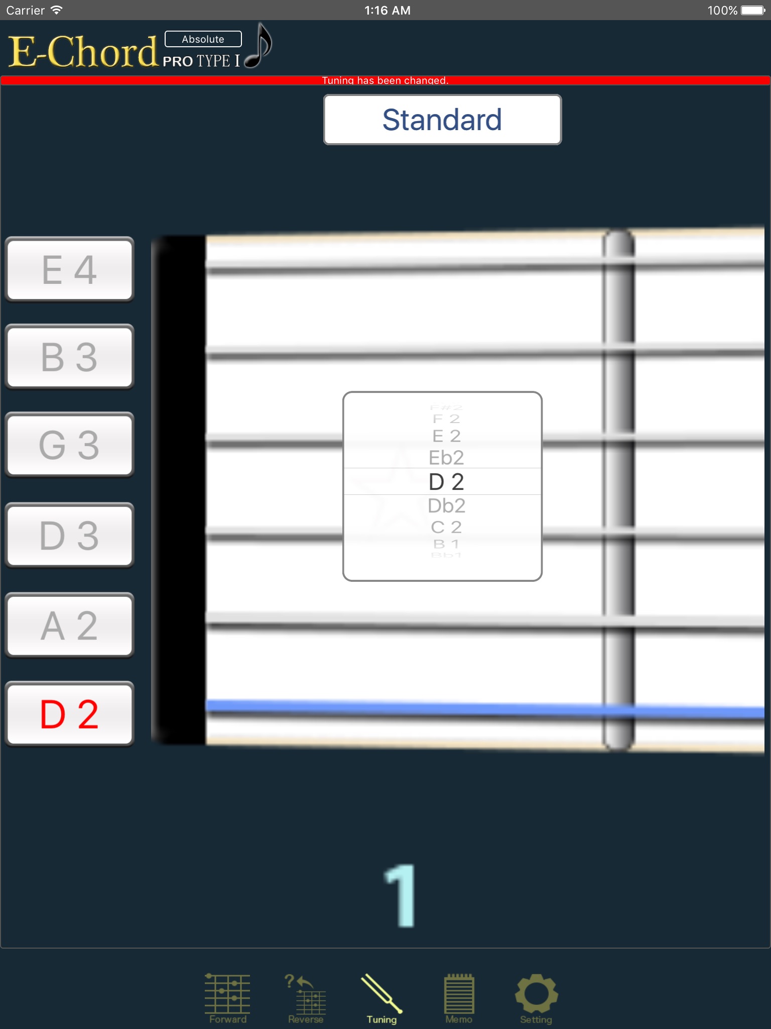 The program can save finger positions matching the tuning you are using at that time.