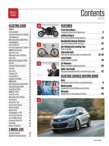 Electric Car Insiders Buyers Guide is the definitive guide to purchasing and operating an electric vehicle. Each annual issue contains a full page profile on each vehicle reviewed and in-depth, four to six page test-drive reviews on select models. Feature articles explain the technology, describe skillful use and help demystify the art of driving electric.