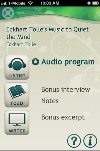 Relaxed listening is one of the most effective ways to realize what Eckhart Tolle calls the “joy of being.” Use this app to transport into the amazing space and beauty of the now.