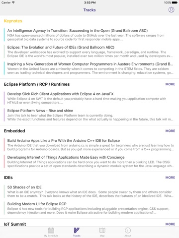 - Sessions to explore by Tracks (categories). Select sessions you find interesting in any track, view them later in My Schedule to choose the ones to attend.