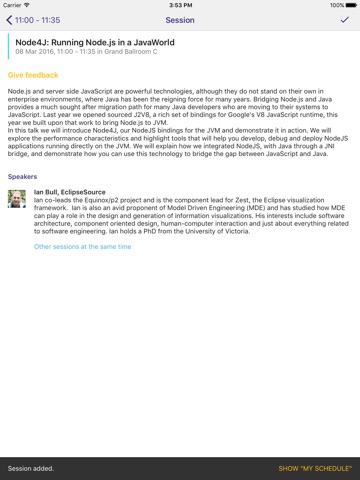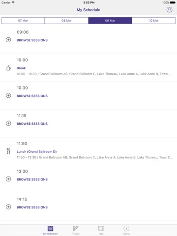 Session descriptions and speaker info are included so you can decide which session to see right on the spot.